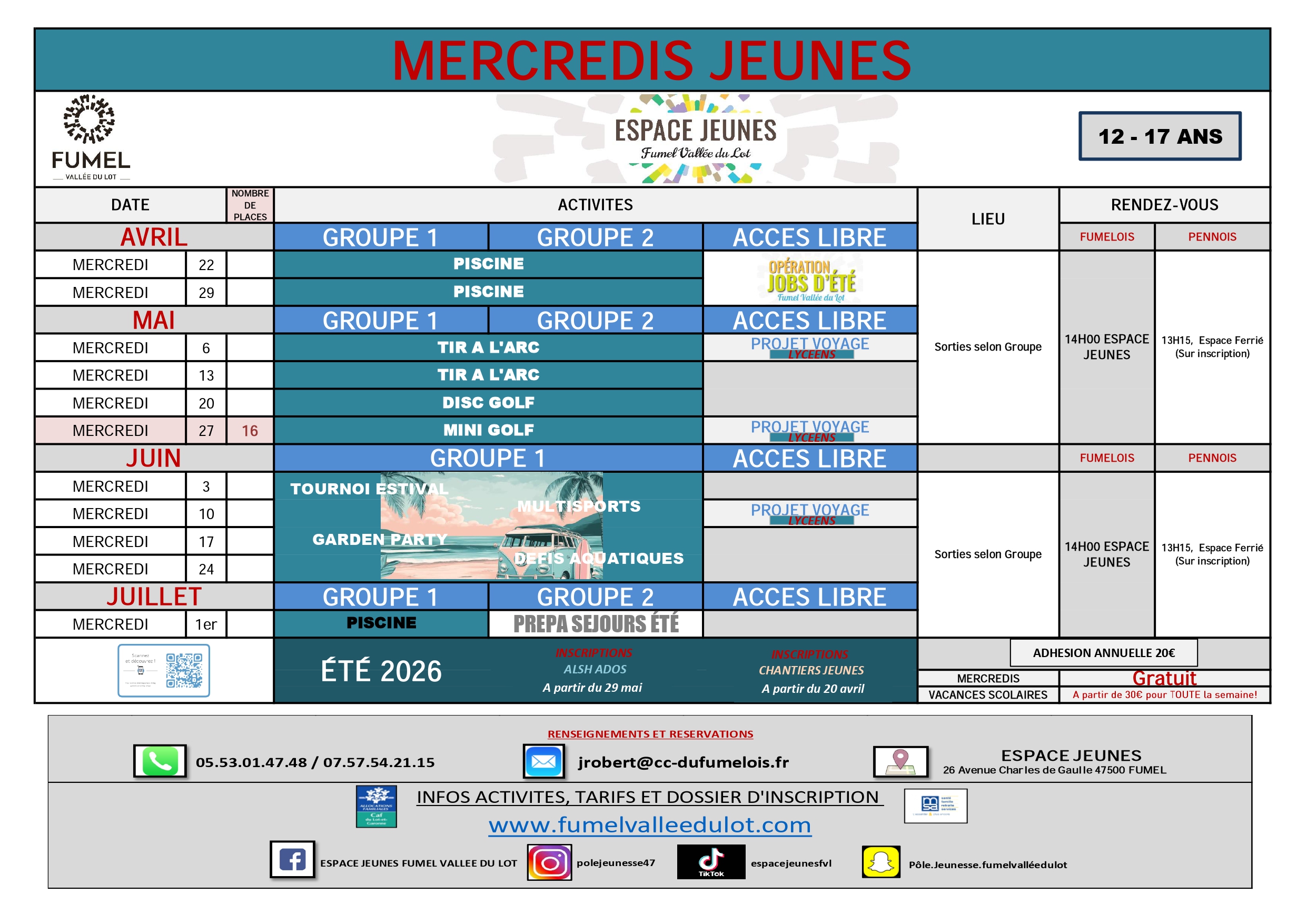 Programme et inscriptions ETE 2026: 29 mai.