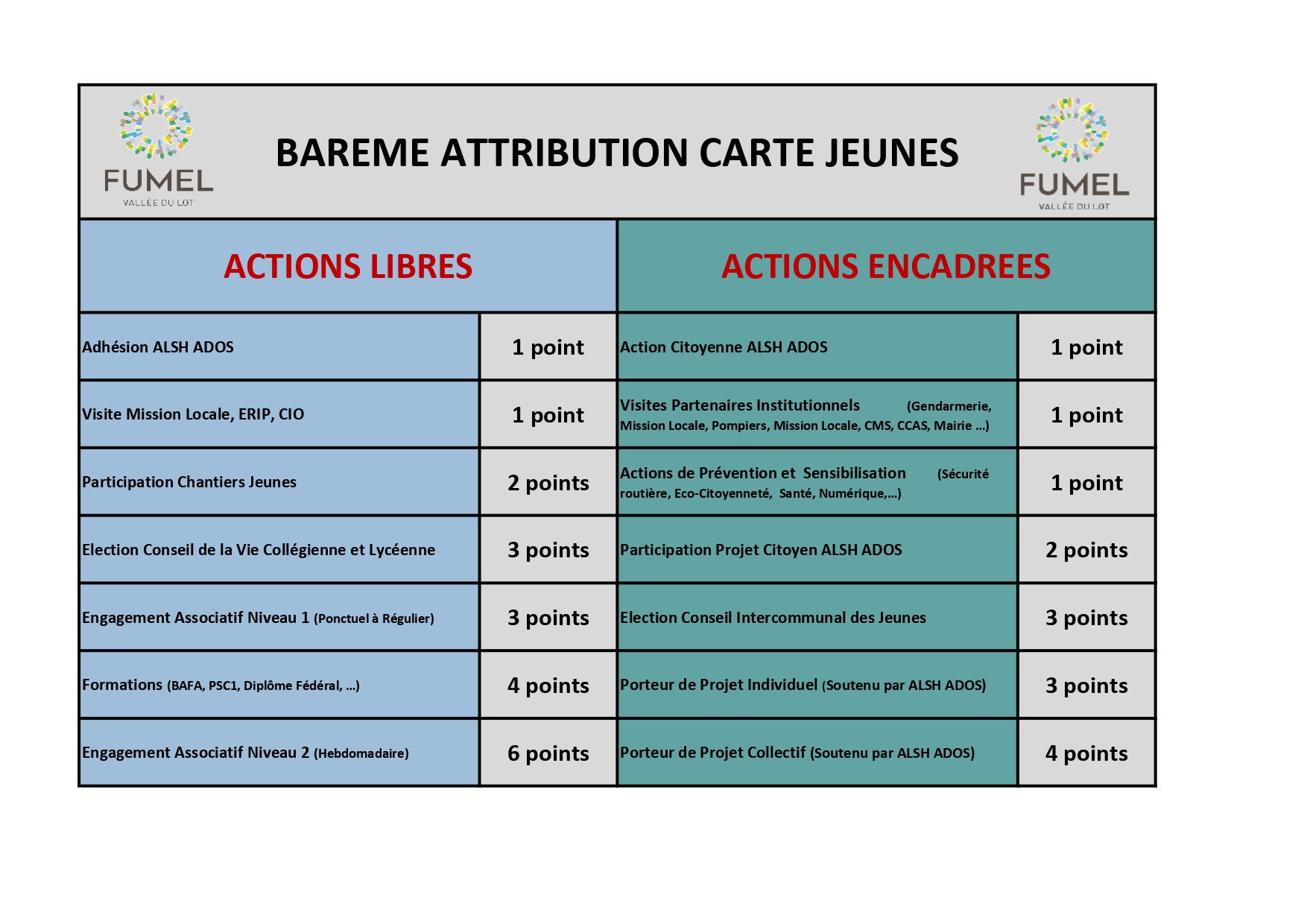 BAREME POINTS - PARCOURS CITOYEN