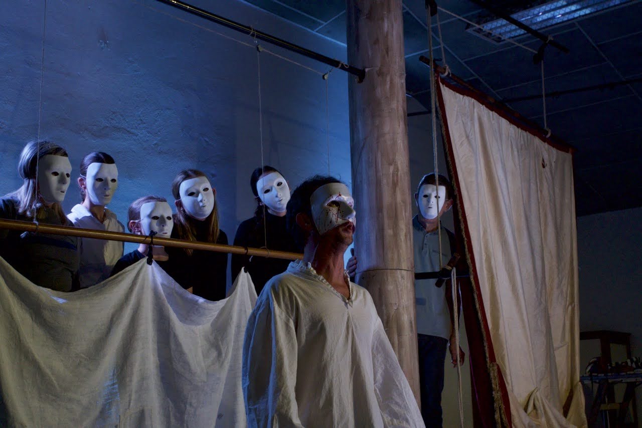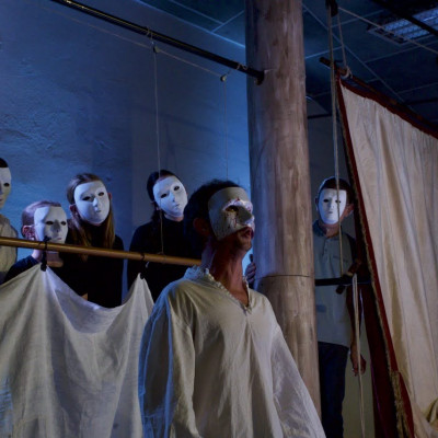 • Restitution des micro-mises en scène. Chaque groupe joue son scénario (entre 1 et 2 min. max.) devant les autres élèves, puis les élèves se font des retours entre eux. Les intervenants analysent les propositions et mettent en miroir avec le travail créatif qui a été fait par l’équipe du spectacle Le Faiseur d’ombres pendant 3 ans.
