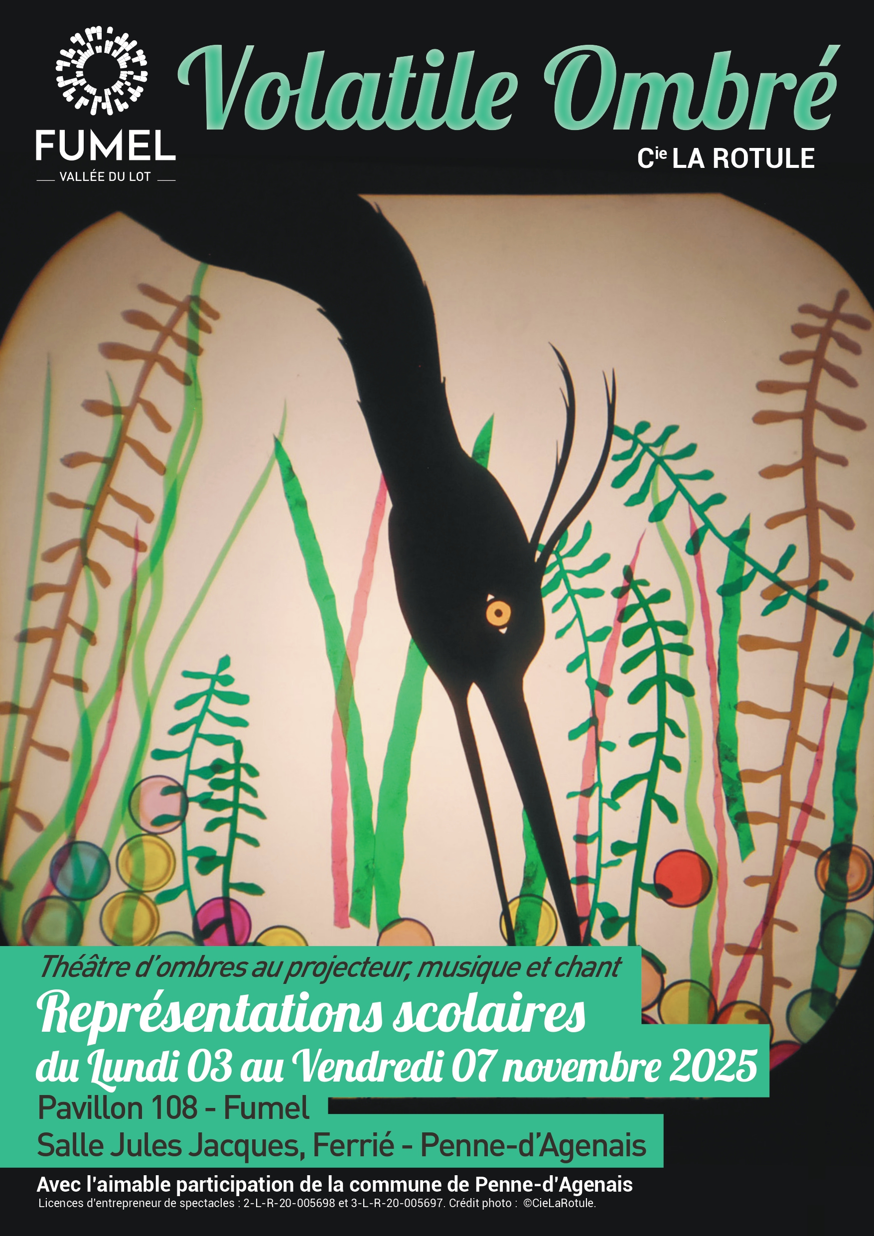 Volatile ombré, un titre qui sonne comme un virelangue pour un spectacle où les mots et les ombres s’imbriquent, où la musique pépie, gazouille et zinzinule, baignée de lumière poétique.