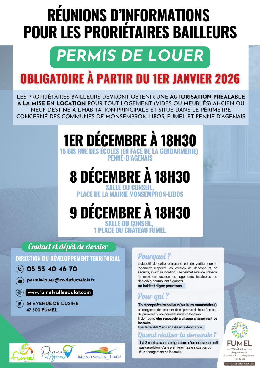 La Communauté de Communes Fumel Vallée du Lot s’engage dans la lutte contre l’habitat indigne en mettant en place le dispositif “permis de louer” sur les communes de Fumel, Monsempron-Libos et Penne-d’Agenais.