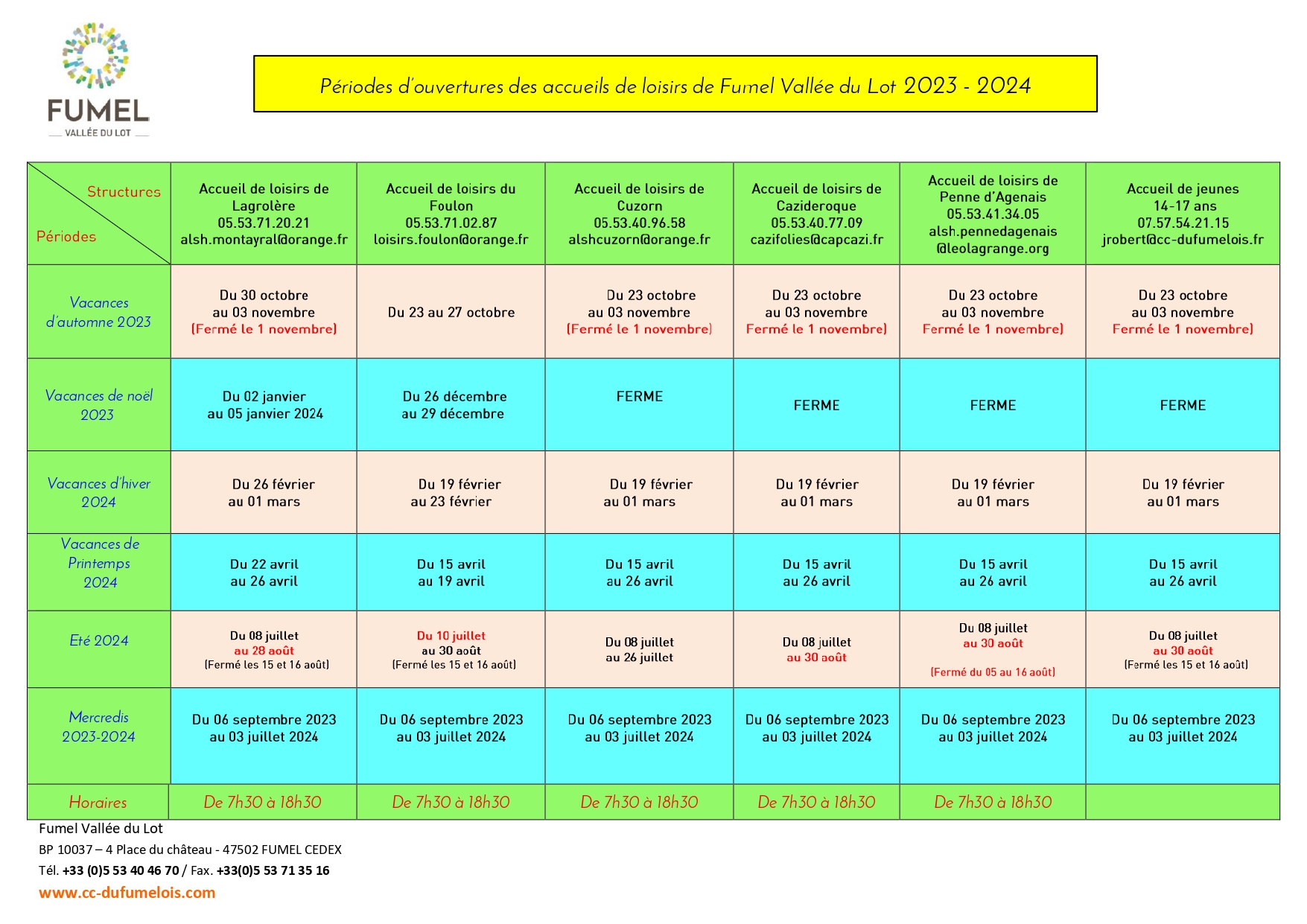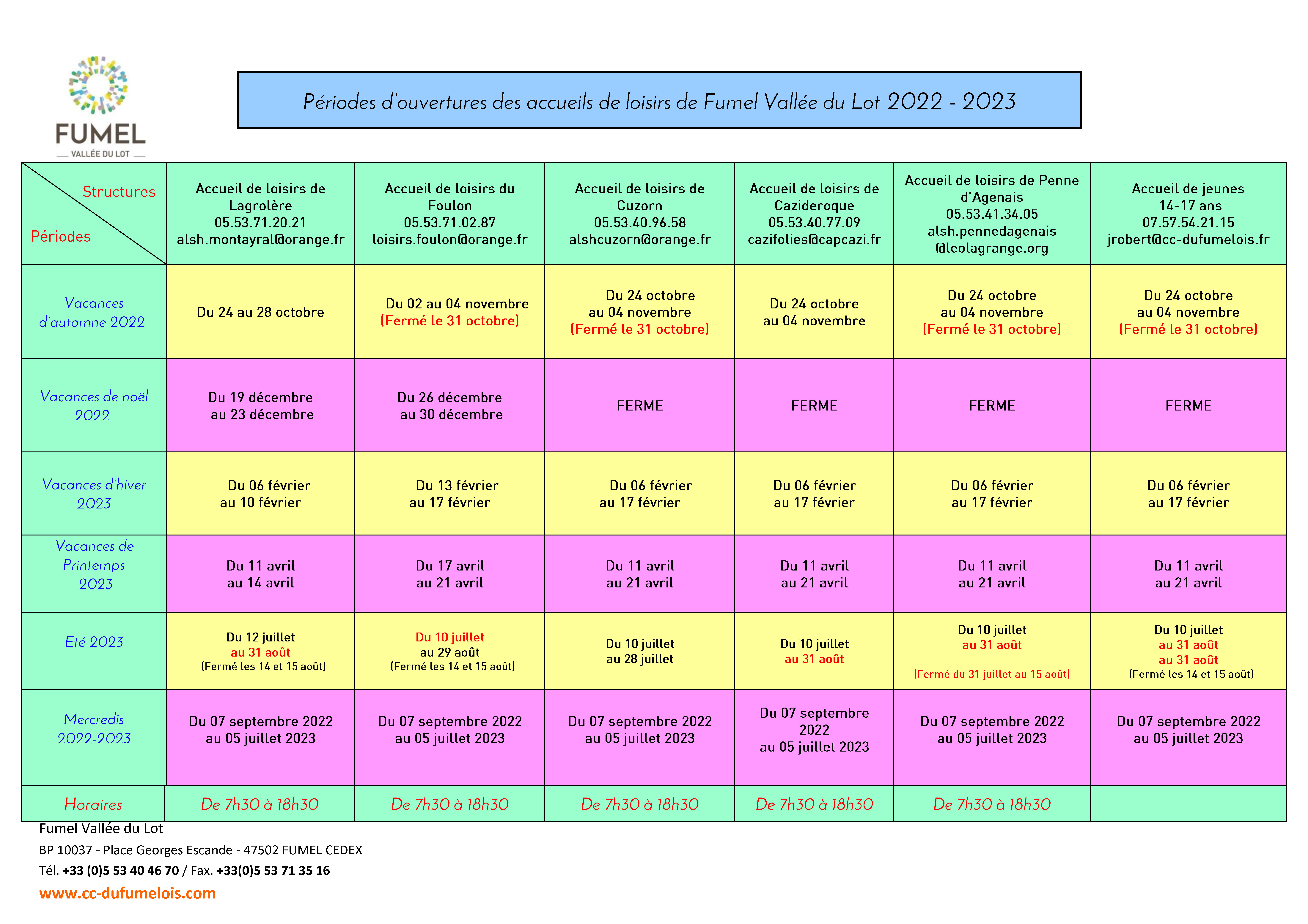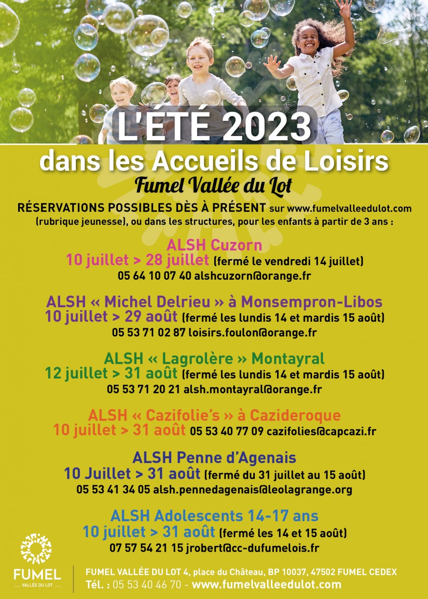 FUMEL VALLEE DU LOT gère 6 Accueils de loisirs extrascolaires 3-17 ans.